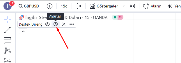 Mobil: Geçerli Sembolün Hemen Altında Destek Direnç Yazısı Bulunur. Onun Üzerine 1 Kere Dokunun Ve Yan Taraftaki Ayarlar Simgesine Dokunun.