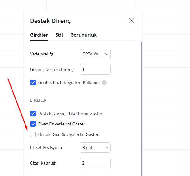 Destek Direnç İndikatörünün Özel Ayarlarını Nasıl Açabilirim?