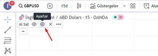 Mobil: Geçerli sembolün hemen altında Al Sat yazısı bulunur. Onun üzerine 1 kere dokunun ve yan taraftaki ayarlar simgesine dokunun.