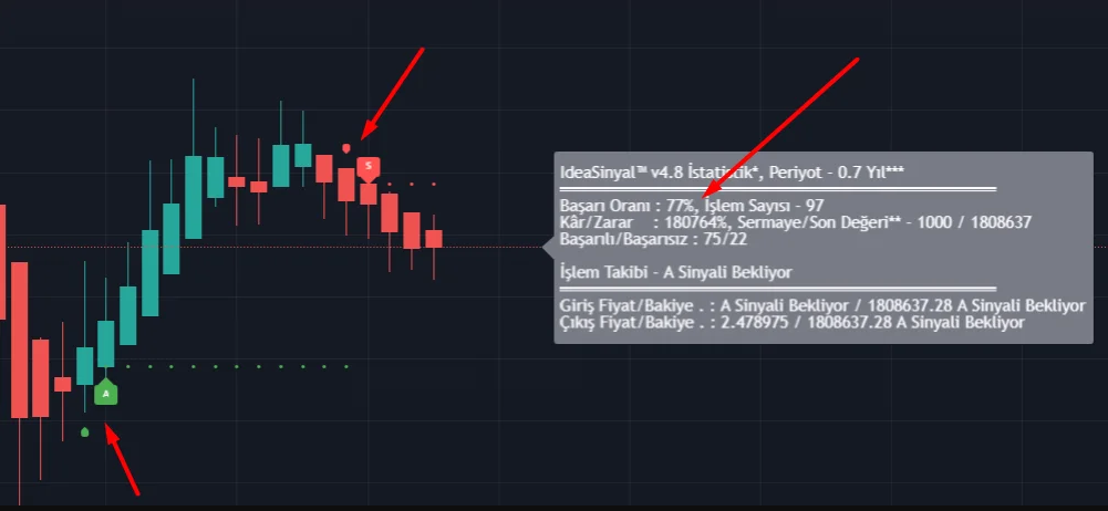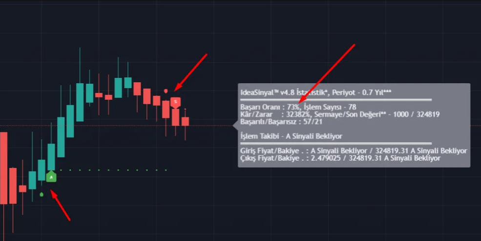 İşlem Takibi Kar/Zarar: Al sinyali verdiği anda fiyatı hafızasında tutar ve anlık olarak kar zarar oranını gösterir. Sat sinyali çıktığı anda işlem takibini kapatır.