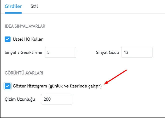 Ideasinyal ayarlarından aşağıdaki seçeneği aktif ederek grafiğinize ekleme yapabilirsiniz. Saatlik ve dakikalık zaman aralığında çalışmamaktadır. Sadece günlüklerde ve üzeri zaman aralığında çalışır.